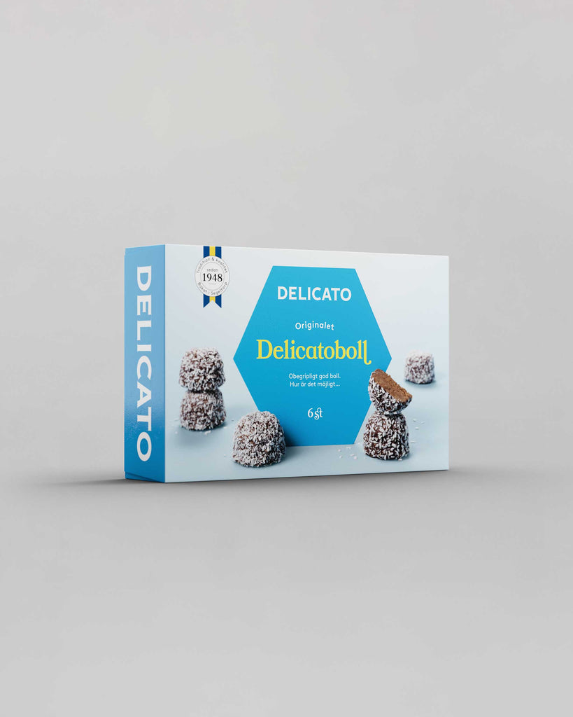 Delikat chokladboll med mockasmak och rullad i kokos - en av våra klassiker. Växtbaserad.